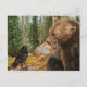 Crow Raven teasing Grizzly Bear wildlife postcard