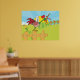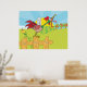A crowing rooster standing on a farm fence. This design looks really effective on these Poster