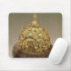 Russian School's Crown of Karan, engraved gold set with jewels, fur trimming, niello and openwork, mid 16th century (gold, jewels, fur) located at the Kremlin Museums, Moscow, Russia. The Crown of Karan, engraved gold set with jewels, fur trimming, niello and openwork, mid 16th century (gold, jewels, fur) was created around the 16th century.