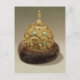 Russian School's Crown of Karan, engraved gold set with jewels, fur trimming, niello and openwork, mid 16th century (gold, jewels, fur) located at the Kremlin Museums, Moscow, Russia. The Crown of Karan, engraved gold set with jewels, fur trimming, niello and openwork, mid 16th century (gold, jewels, fur) was created around the 16th century.