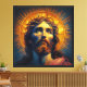 A portrait of Jesus Christ wearing the Crown of Thorns, rendered in a dramatic style emphasizing line work and texture. Art expressing sublime sacrifice and hope with a golden halo and deep coloring
