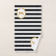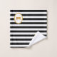 Elegant towel set with beautiful crown with black and white stripes on the background. Chic modern towl set.