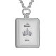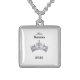Sterling Silver and in a square shape this lovely necklace has in the center of it an image of a gleaming pageant queens crown in silver.