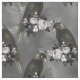 Crowned Black Birds and White Flowers on Grey Fabric