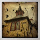 An old church with crows gathering in front of it in surreal fashion. Copyright©Gothicolors All Rights Reserved.