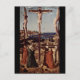 Vintage darkly colored image of Christ on the cross with the thieves beside him. Fine art by Antonello da Messina.
