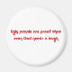 This hilarious magnet reads Ugly people are proof that even God needs a laugh in red lettering. If you need a laugh, buy this ugly people magnet and keep it close. This rude magnet would be a great gag gift idea, too. Change the ugly people magnet size or shape if you want. Change the background color from white to a wide variety of color choices. Or add your own message or a name.