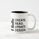 This 11 oz. mug is designed for crud (create, read, update, design.)