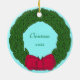 Dated Ornament. (Be sure to enter the desired date on the back!) The bow of a large cruise ship encircled by a green wreath with a red bow