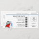 Save the Date invitation cards with a cool boarding pass design for a cruise ship wedding! Easy-to-use template, just enter your info in the space provided, or click the customize button to add additional text.