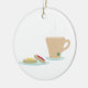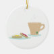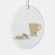 Lightweight, smooth, pure white ornament with nice sheen. Perfect size to be seen from across the room ... and to attract closer inspection! Price was great for ordering enough for the whole family! Clear, bold black design just as requested. Matches the order exactly. Just so nice!