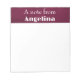 Imagine a notepad, its design carefully chosen to evoke a sense of refined taste. The cover features a distinctive stripe, meticulously crafted to mimic the tactile feel of crumpled paper, rendered in a deep, dark-burgundy hue. This subtle texture adds depth and visual interest to the notepad's appearance. Upon this textured surface, the text is presented in a classic white font, a deliberate choice that ensures legibility and timeless appeal. The combination of the dark-burgundy paper imitation and the crisp white lettering creates a striking contrast, further enhancing the notepad's elegance. Taken as a whole, the design embodies an elegant style, making it perfectly suited for stationery purposes. It's an ideal choice for personalized stationery, especially when customized with a name, adding a personal touch to this already sophisticated item.
