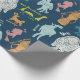 Get to know your Cryptids with this fun wrapping paper. This gift wrap features cartoon illustrations of cryptid creatures in assorted fun colors set against a navy blue background. There's a Yeti, Wendigo, Jackalope, the Loch Ness Monster, the Flathead Lake Monster, a Squonk, the Black Shuck, the Jersey Devil and a Kelpie in white, light aqua blue, teal, lime green, orange and pink. The illustrations have a fun and cute style perfect for anyone who loves their fantastic creatures not too scary.