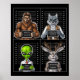 This cryptozoology design features a funny cryptids mugshot of a bigfoot, werewolf, alien, and jackalope.