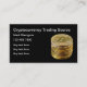 Simple modern Cryptocurrency business cards in an online template with some bitcoins in the background and classic layout you can customize online.