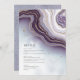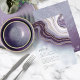 An eye-catching combination of a deep eggplant, amethyst, soft blue and white marbled agate, textured with faux-crystals and highlighted in glittering gold creates the background for the pieces in this coordinated collection. A clean, modern serif font and sprinkled specks of gold complete this striking design style. This elegant wedding reception menu features all the above with a soft, watercolor background, a shimmering amethyst texture on the back and a template to easily add your menu selections. View the collection link on this page to see all of the matching items in this beautiful design or search ID825 to see additional color choices for this set.