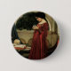 The Crystal Ball (1902) by JW Waterhouse is a vintage Victorian Pre-Raphaelite fine art portrait painting. A beautiful young woman in a red dress gazing into a crystal ball. She is weaving a magic spell with the aid of a witchcraft book and a human skull.