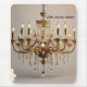 This striking image showcases an iconic chandelier, its intricate crystals and radiant lights meticulously detailed in fine lines. Bathed in golden hues, the chandelier embodies luxury and sophistication, creating a mesmerizing interplay of light and shadow against a soft, light-colored background.