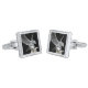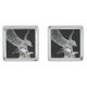 A pair of cuff links with a picture of a beautiful, elegant, and exceptionally detailed crystal eagle flaring its wings.