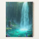 A glowing waterfall cascades into a turquoise pool, surrounded by vibrant crystals and lush moss.
