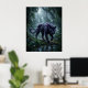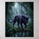 A sleek crystal panther moves silently through a moonlit jungle, its dark body enhanced with faceted gemstone growths along the shoulders, spine, tail, and eyes. Violet, silver, and midnight-blue reflections create a luxurious contrast against its stealthy feline form. Giant leaves, misty stones, hanging vines, water reflections, and pale moonbeams build a mysterious cinematic atmosphere. Bold and elegant, this artwork is ideal for luxury interiors, game rooms, dark décor themes, wildlife lovers, and dramatic statement wall displays.