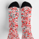 These socks feature a vibrant, abstract design characterized by a playful mix of red, white, and teal hues. The pattern consists of small, irregular shapes that create a lively and dynamic visual effect, reminiscent of confetti or splashes of paint. This eye-catching design is perfect for adding a pop of color to any outfit, making these socks an ideal choice for those who want to express their unique style while keeping comfortable. Whether worn casually or as a statement piece, these socks are sure to stand out and brighten up your day!