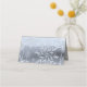 Winter wedding themed folded place card done in a icy silver blue look, with crystal looking snowflakes and pretty flourishes. A silver framed white text area, on the front, you can personalize by hand.