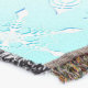A quality printed throw has its advantages. This is a much finer weave throw than its loopier cousins, and though lighter, it is worth the investment for custom room accessorizing. The back is much prettier than the typical brown, and the fringe on the long sides very vivid, the selvage nicely done. Before photographing, I washed the throw in cold water, delicate, with a thicker woven throw the same size. On tumble dry low, this throw was dry in half the time as the other. This is a very practical quality if you use throws for furniture covers or to wrap up in frequently. The sleekness of the fabric makes it a great layer for accenting or protecting without the feeling of sitting on too much stuff. Perfect for napping or when you feel a light chill coming on. The color printing is beautiful and on this fabric, matched the design and color of my Photoshop image. This is an advantage for blending room fabrics and colors. The fringe on the short sides prints the colors from the design image and therefore varies from the side fringe. I streaked a white fractal line through the plaid pattern to give the illusion of weaving. This printed as crisp as an illusory thread, and put some white in the short side fringe, showing another advantage of print vs loomed- for artistic purposes, line lines, detail, and color integrity can be planned and preserved. My loomed throws have color limitations and more of a needlepoint texture. Print throws reproduce an exact image. The throw felt a little stiff straight out of the package, but this went away in the first delicate wash. Of course I searched the wash water for ink or bleeding and there was none.