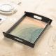 This is a well made, sturdy wooden tray with a flawless black finish and lovely map on the tray surface. It is both vintage & modern at the same time. Looks exactly like the photo; does not disappoint. So nice to find something of quality individually made and not the mass-produced 'shabby chic' merchandise seen in stores. I am so pleased to be able to give this to my college-age niece for her birthday. This can be used as a tray to hold jewelry or toiletries, or hung on the wall as art. The map surface is sealed (it is slightly shiny) so would be moisture resistant. It is well worth the asking price but I was able to apply a sale code as well. Very happy with my purchase. Map is crisp & clear and sealed with a water-resitant finish.