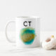 A CT mug featuring an abstract design inspired by computed tomography imaging. Concentric rings suggest the layered, cross-sectional nature of scanning, surrounded by a loose watercolor wash in teal and warm gold tones. A thoughtful gift idea for a CT technologist, radiology or medical imaging team member who works in this specialty department.