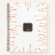 This sleek and modern notebook features a striking design inspired by electronics and technology. The cover showcases a vibrant orange circuit board pattern with intricate lines resembling electronic pathways. At the center, a detailed silver or metallic chip stands out, giving it a futuristic and tech-savvy look.
