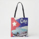 Cuba by Air vintage style vacation print to the island nation featuring a retro old car.