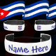 Design shows the Cuban Flag and the word CUBA below the flag in same colors. Uses dark blue stripes. Above, a spot for your name, in navy blue letters, so you can create a personalized look or gift. Share your heritage at your next family reunion with this athletic headband.