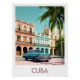 Vintage illustration of a Havana street with a classic American car and colorful facades. A perfect poster for retro wall decor with character.