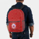 Personalized backpack showing the Cuban LOVE FLAG. The word LOVE is featured in red letters inside a white, fractal circle of squiggly squares. The circle sits on a red, fractal background, also, of squiggly squares. Perfect gift for Valentine's Day or any special time. Can be customized for any holiday and personalized with any name.
