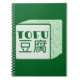 An illustration of a cube of tofu drawn in a light green colour. The Japanese text on the tofu reads tofu.