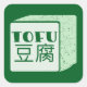 An illustration of a cube of tofu drawn in a light green colour. The Japanese text on the tofu reads tofu.