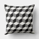 Optical illusion of shapes creating the pattern of cubes in black, white and grey.