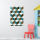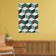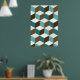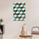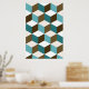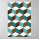 Optical illusion of shapes creating the pattern of cubes in teals, browns and white.