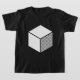 A T-shirt with a simple geometric cube with a half-tone shaded side. Like an illustration from an old math book.