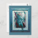An artwork features a semi abstract woman with a shawl / veil in blue, white, and pink tones.