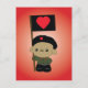 Cuddle Revolution Puppy post card. A cute puppy holding a heart flag with a cute heart beret, army jacket, and little black boots. Cuddle revolution! Very cute gift for fans of hearts and cuddly kawaii humor.