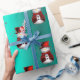 Cue Red Snowmen on Aqua Christmas Wrapping Paper