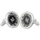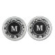 Silver plated cufflinks shown in a lovely black, blue and white vine print with sample initials, customize and change the sample initials shown to yours.