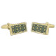 Cufflinks shown in a gold tone rhodium plated rectangle shape with a lovely damask leaves print.