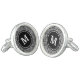 Silver plated cufflinks shown in a stylish black and white floral pattern print with sample initials, customize and change the sample initials to yours.
