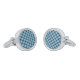 Cufflinks is shown in a silver tone rhodium plated finish in a stylish plaid print.