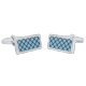 Cufflinks is shown in a silver tone rhodium plated finish in a stylish plaid print.