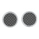 Cufflinks shown in a silver tone rhodium plated round shape with a black and white circles print.