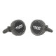 Cufflinks by Ties & Cuffs shown in a gunmetal plated round shape with a Vegas print in white on a black background color.